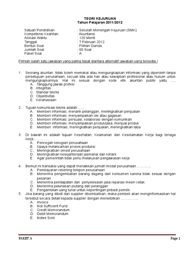 Soal Teori Kejuruan Akuntansi Smk Tahun 2012