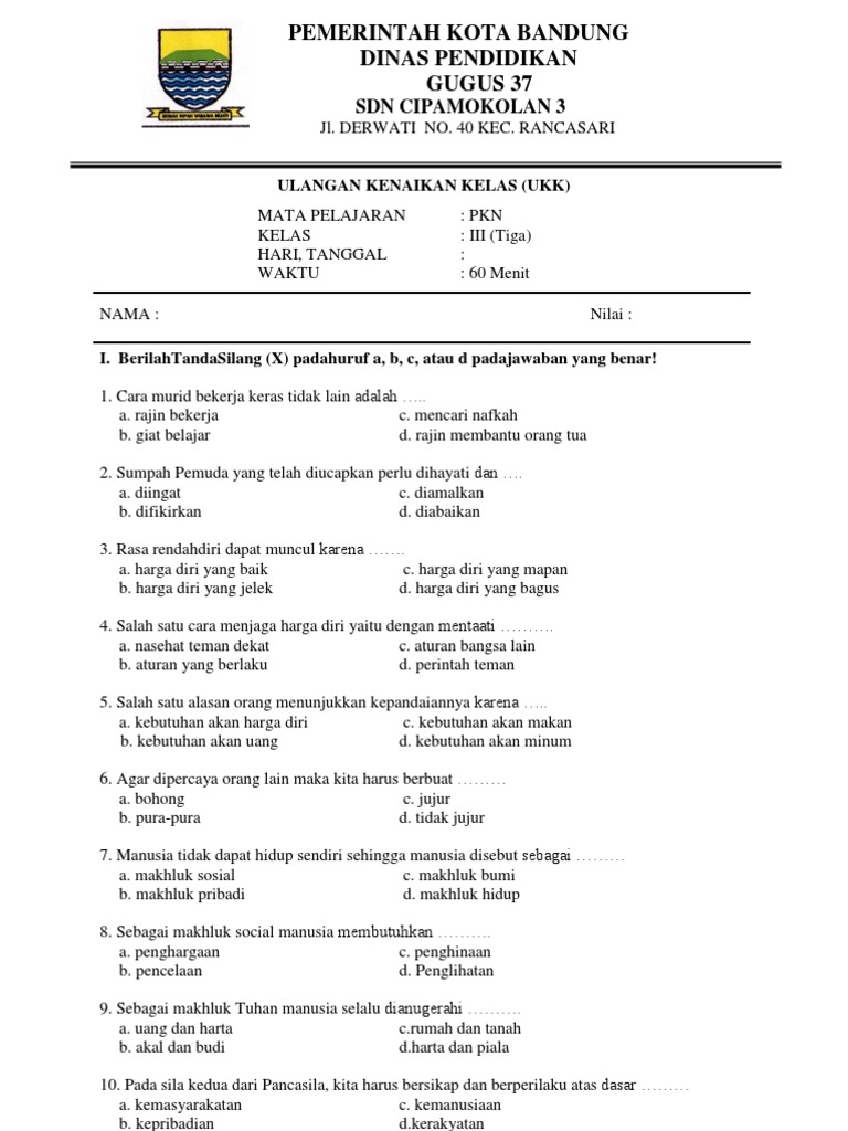 Soal Ukk Pkn Kelas 3 Semester 2 Pdf