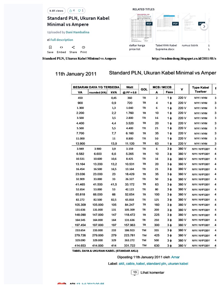 Standard Pln Ukuran Kabel Minimal Vs Ampere Scientific Observation International System Of Units