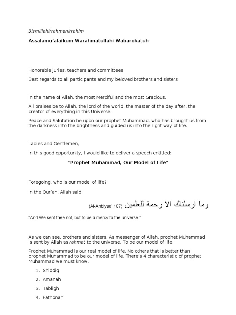 Continue reading Pidato Bahasa. Kultum Bahasa Inggris dan Indonesia dengan judul akhlaq remaja dan islam - Free download as Word Doc doc docx PDF File pdf Text File txt or read online for free. And whoever led astray by Allah.