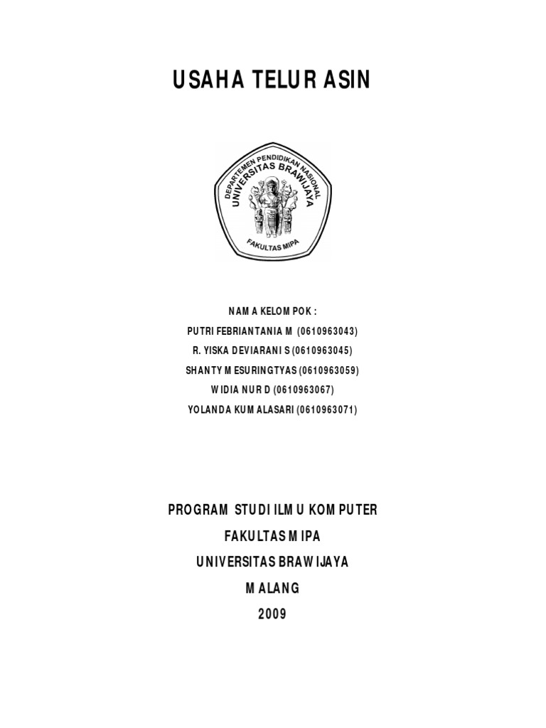 Telur sebagai salah satu dari hasil industri perunggasan mempunyai peranan turut serta mencerdaskan kehidupan masyarakat. Untuk keperluan ini Kami sudah menyediakan Template Proposal Usaha dengan tampilan Cover Proposal Usaha yang cukup elegan. Usaha telur asin saya yang awalnya kembang kempis dengan hasil penjualan tidak menentu namun setelah saya beli E-Book Telur Asin saya telah dibukakan wawasan saya tentang metode-metode pemasaran penjualan dan saya jadi paham tentang kesalahan dan kekurangan saya selama ini.